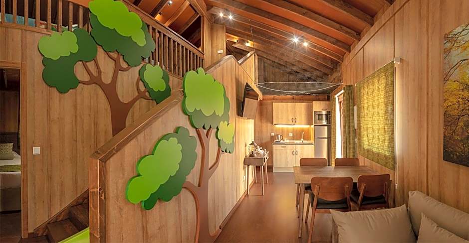 This bungalow comes with 2 single beds, a bunk bed and a sofa bed for single use. It includes a mini-fridge, microwave and coffee and tea facilities. There is a 42 inch TV, air conditioning and heating. The bungalow features a large terrace with hammocks.